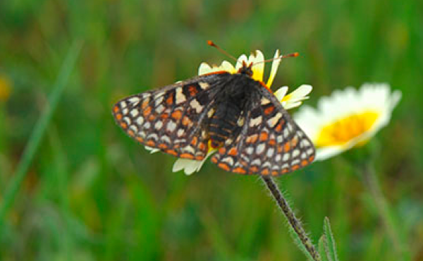 The checkerspot butterfly is currently a threatened species in the Northwest region of the U.S. that likely to become endangered in the foreseeable future. Checkerspot butterflies exist on shallow, serpentine-derived soil. Threats include habitat loss and fragmentation, invasion of exotic/invasive plants, nitrogen deposition, pesticide application (including drift), illegal collecting, fire, overgrazing, and gopher control.